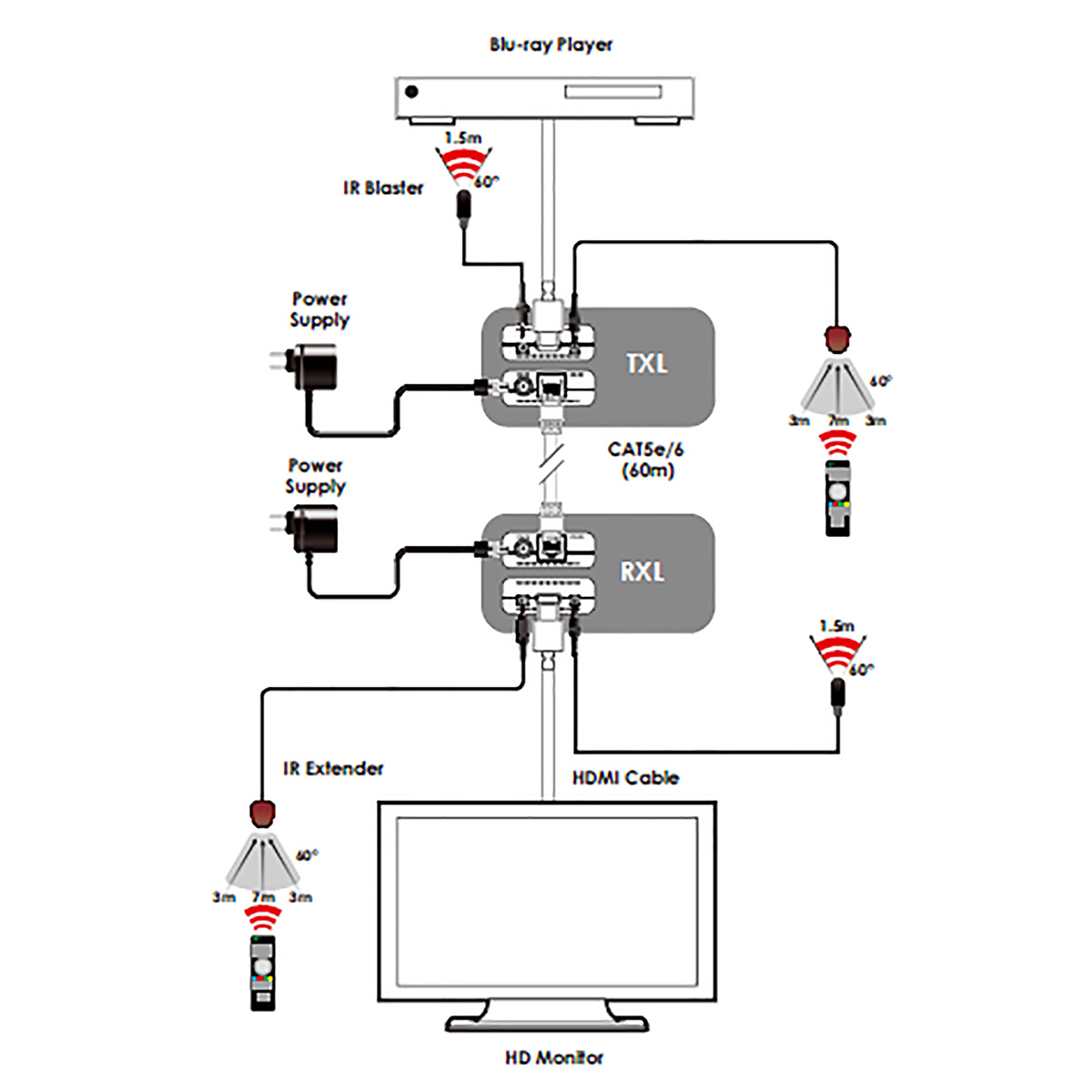 The HDMI Extender over single CAT5e/6/7 incorporating IR signal transfer allows for a more efficient system setup and is easy to install. Uncompressed video and audio can be transmitted to distances of up to 70 meters (1080p) and supports High Definition Audio and 3D signals. Designed with HDBaseT technology for greater flexibility in custom installations with full HDMI and control signal transfer over a single CAT5e/6/7 cable.