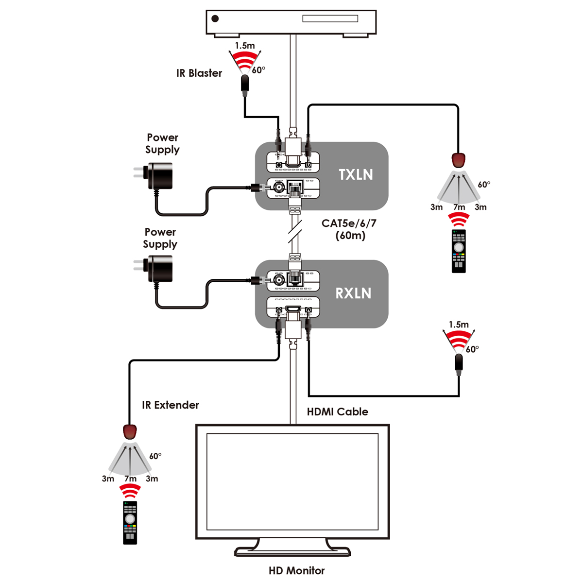 HDMI to CAT5e/6/7 with IR (4K@60 420 up to 40M)