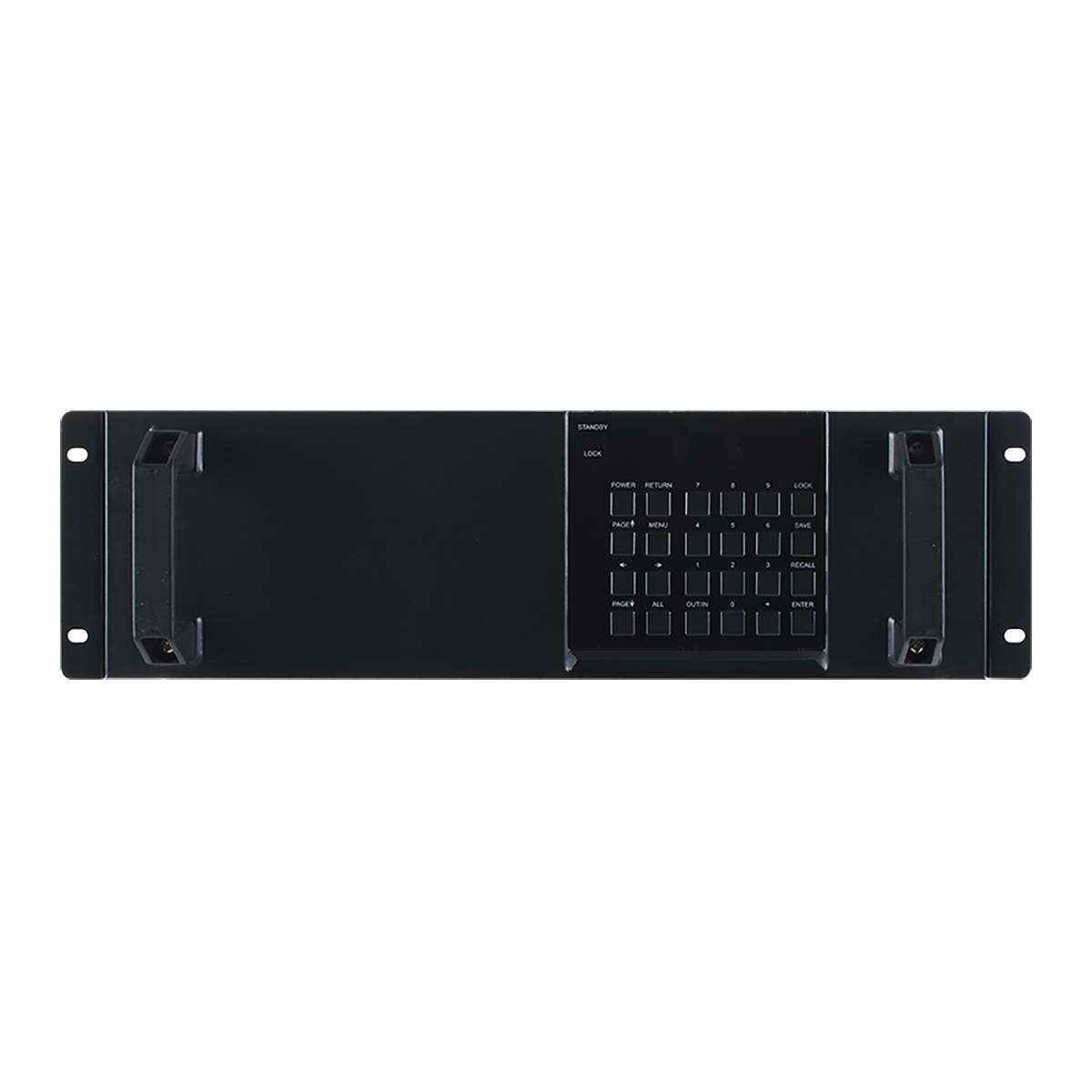 - Supports control of the matrix via on-panel, RS-232, Telnet and WebGUI controls