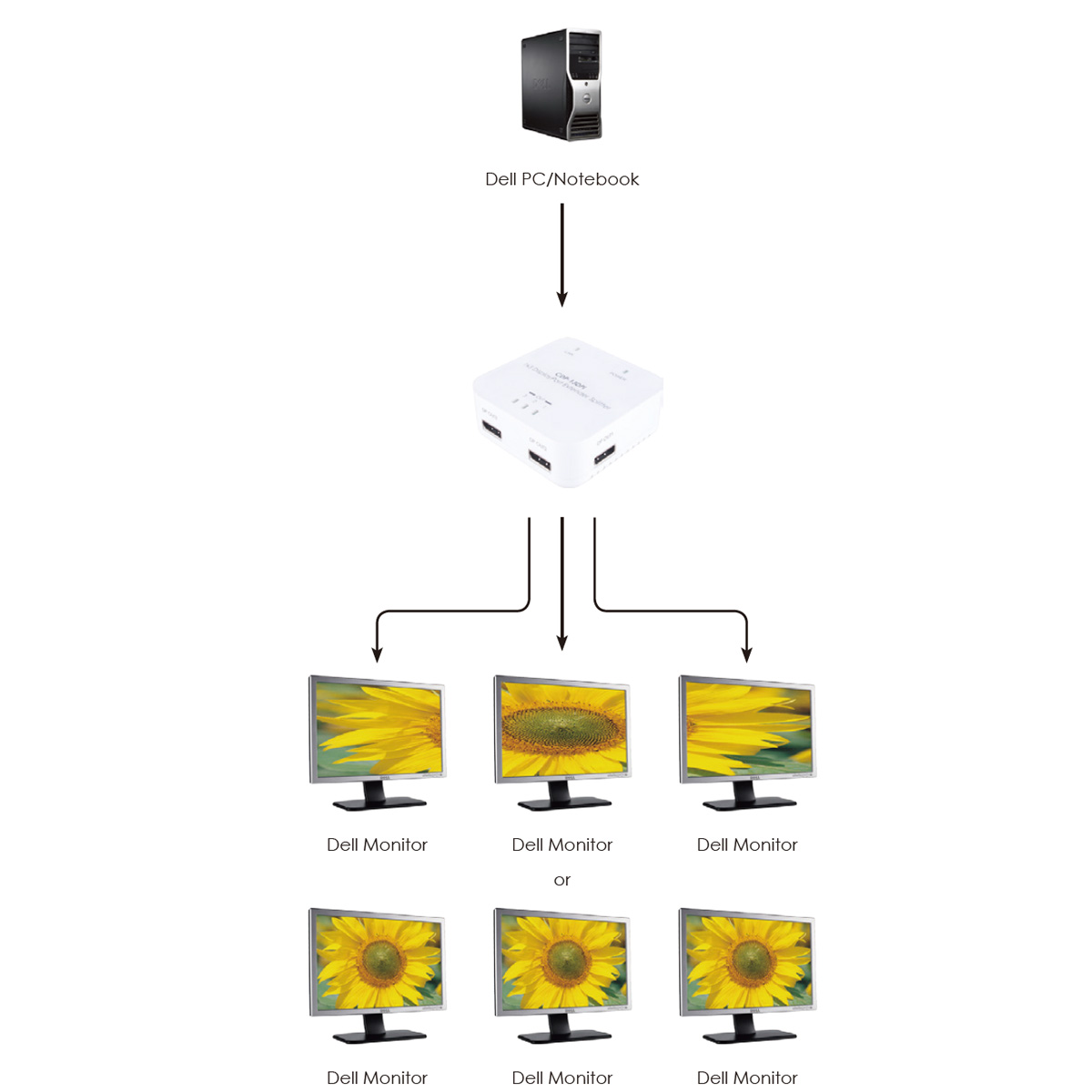 - Works with any desktop and notebook computer which have a DisplayPort output port