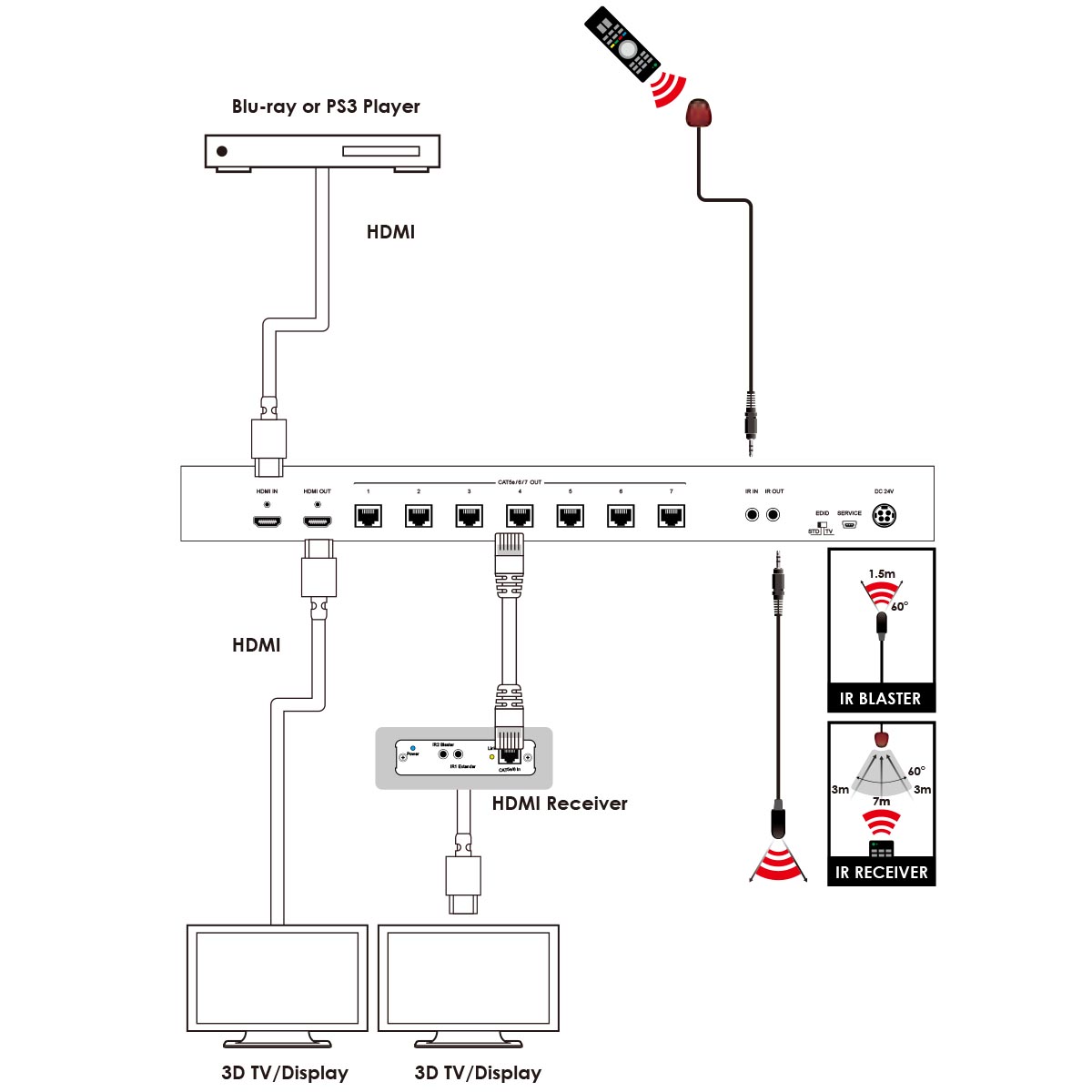 1 by 8 HDMI over HDMI & CAT5e/6/7 Splitter