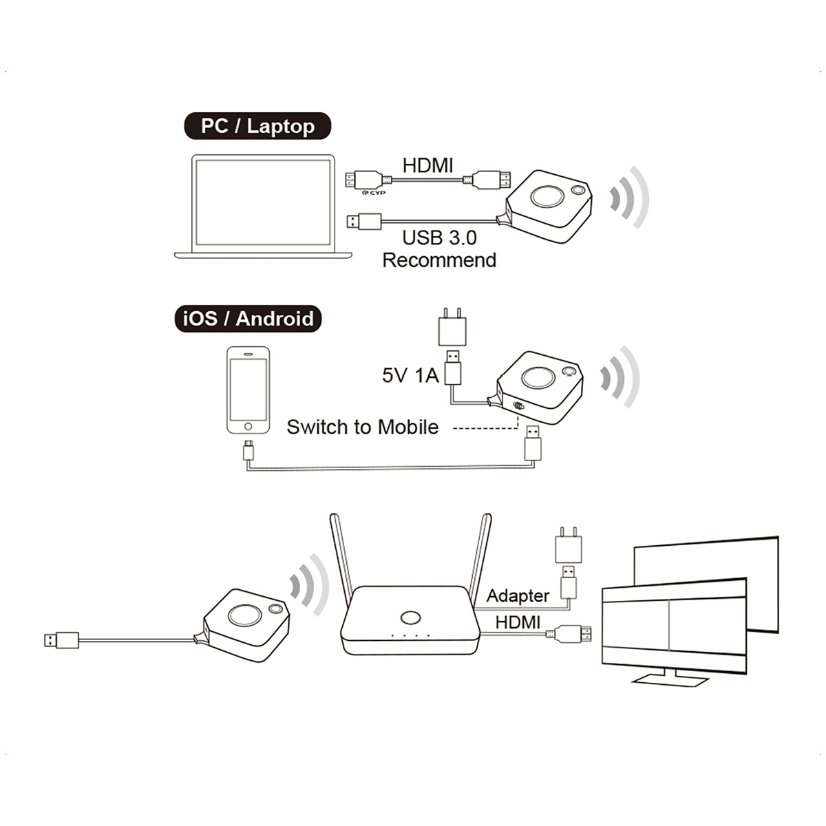 WPS-QPL01 (LT01/LR01) is an entry level modle of CYP WPS (Wireless Presentation System) product family. It is a powerful but low cost WiFi Presentation System product. It contains one transmitter(LT01) and one receiver (LR01). The plug & mirror capability makes it easier to use without learning curve. LT01 comes with high speed 802.11ac WiFi module and external antenna to bring you the great connection and smooth streaming. Through our advanced Receiver LR01, you can even use your mobile phone to cast without efforts, this will be the great entry-level product for WPS application.